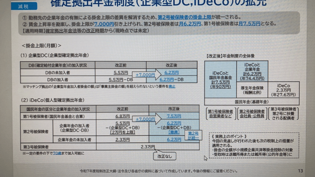 確定拠出年金の掛け金が増える