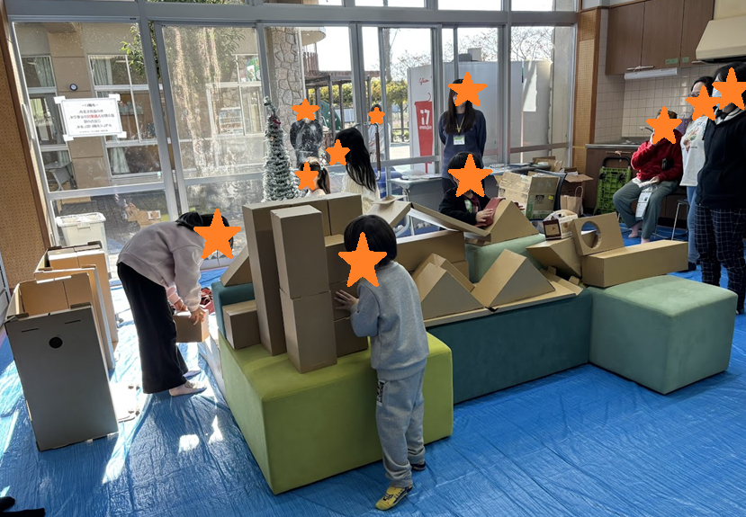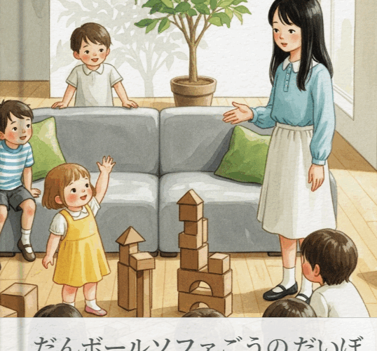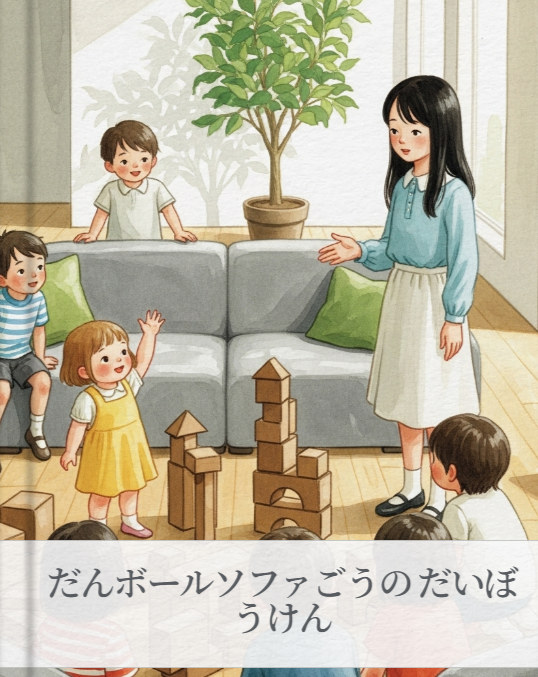 つまり、段ボールとソファで何かをつくるという絵本を作成し